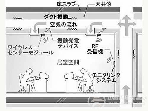 这种系统不需要布线或者使用电池——这一直是引入和操作多个传感器网络系统的使用障碍——而且可以容易地构造系统。此外,通过由该系统构建的系统监控,可以实现环境的可视化。例如,在示范试验的温湿度监测的办公空间里,它可以反映出每个办公室空调运转的温度和湿度等数据,每个办公室都可以连接到建筑物被统一运作,以确保舒适度和满意度,并可以节约能源。