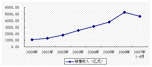 图5 2000-2007年8月我国汽车零部件制造业收入变化状况