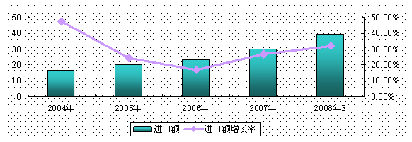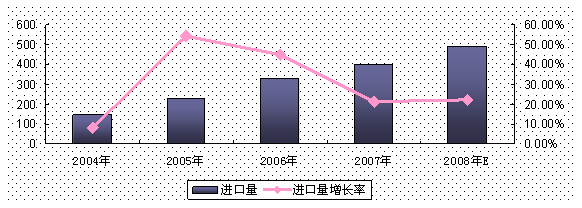 图2 2004-2008年我国LED进口量及变化状况