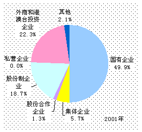 图2 2001年及2008年我国交通运输装备制造业不同性质企业市场占有率对比