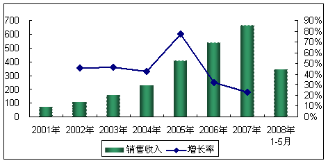 图1 2001-2008年5月模具行业市场需求及变化情况