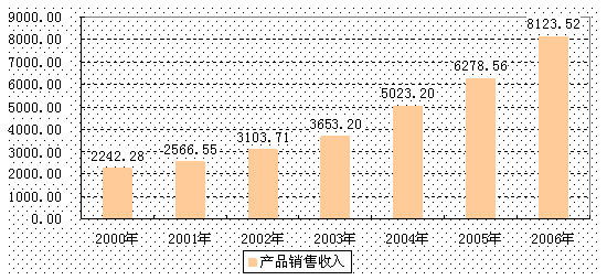 近七年,我国金属制品工业销售收入逐年增长,增长率保持在14%以上,市场规模不断扩大。2006年该行业销售收入达到8123.52亿元,增长率达29.39%,相比2000年市场规模扩大了2.62倍。在国内经济与工业突飞猛进之下,大量五金零件需求旺盛,市场规模扩大。