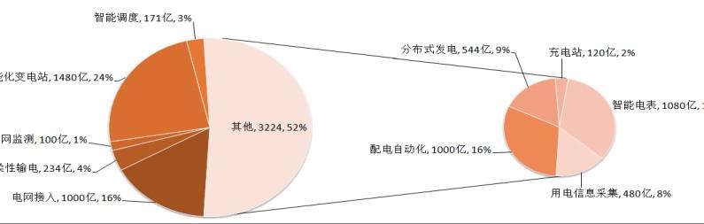 2010-2020年,坚强智能电网建设将拉动数万亿的投资,预计将带来近8400亿元的智能电网设备需求。其中坚强电网部分,即指特高压输电网,预计将在2012-2015年迎来建设高峰,2020年完全建成,将带来总计近2200亿元的电力设备需求;电网智能化包括发电、输电、变电、配电、用电、调度等六大部分,预计将在2015年前后迎来建设投资高峰、2020年前后初步建成,将带来超过6200亿元的电力设备需求。