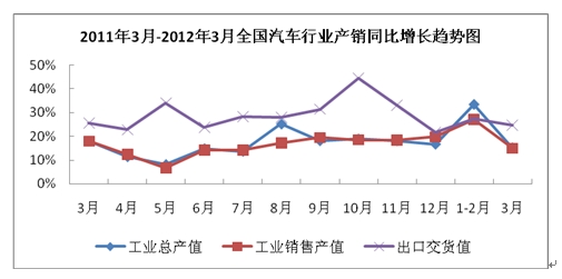 2012年1-3月,全国汽车行业完成出口交货值688.53亿元,同比增长18.08%,同上月的增速相比上升了3.03个百分点。