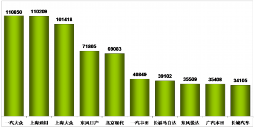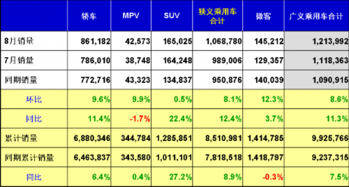 广义乘用车生产商销量排行榜(8月国内销售综合数)