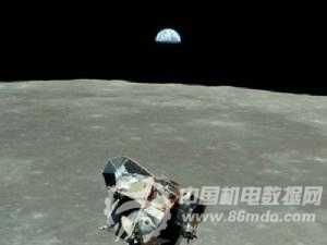 这张照片是有登月舱外的摄象机拍摄的。