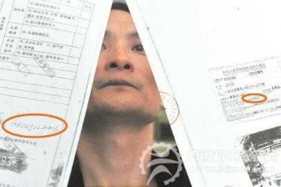 余先生展示他车辆发动机号不一致的单据。