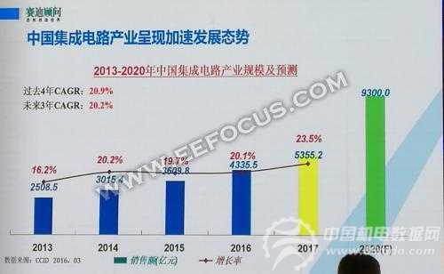 目前我国集成电路产业呈现加速发展态势,预计到2020年销售额将高达9300亿元。