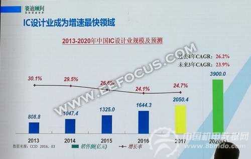 其中,IC设计业成为增速最快领域,预计到2020年销售额将达到3900亿元。