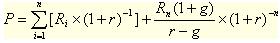2.假设从(n+1)年起的后段,企业预期年收益将按一固定比率(g)增长,则分段法的公式可写成:
