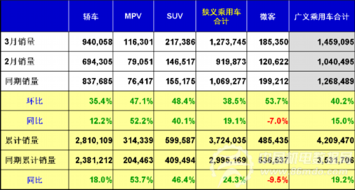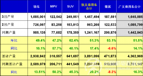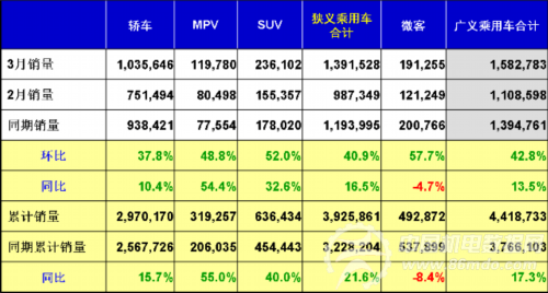 广义乘用车生产商销量排行榜(3月国内销售综合数)