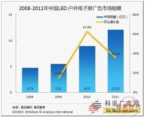 目前LED户外电子屏广告市场的竞争愈发激烈,其一是目前凤凰都市传媒凭借着优质点位、科技创意及凤凰的品牌影响力,在广告收入上连攀新高,比市场平均规模增长率高出近42个百分点,市场规模增长迅速;其二是一些以传统户外媒体及其他户外媒体形式为主营业务的媒体运营商竞相扩展LED户外电子屏业务,未来市场参与者队伍将愈发庞大;其三是随着二三线城市的生活水平的提高,国际广告主全国性营销的战略布局,对于以电信传媒为代表的主攻二三线城市的媒体运营商而言,长远来看也会存在着较大发展空间。