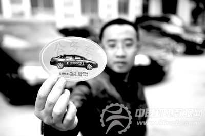 青海省某单位一名驾驶员在展示领取的公务用车标识。