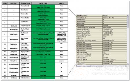 图1:一个典型的相关的数据表TEDS传感器与一个允许用户查看当前数据和自定义传感器的标定及其他参数。