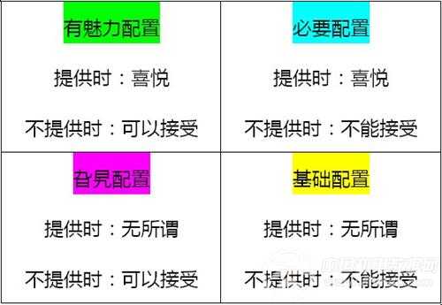 在配置研究中使用KANO分析,通过提供/不提供时消费者的感知态度,将配置划分为有魅力配置、必要配置、基础配置和旮旯配置,KANO配置划分方法可以非常清楚的反映出消费者对配置的需求,以此为基础为汽车厂家在做配置规划时提供市场依据和数据参考。