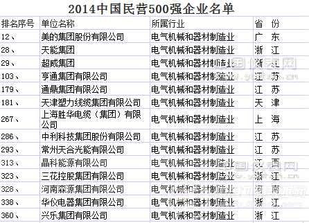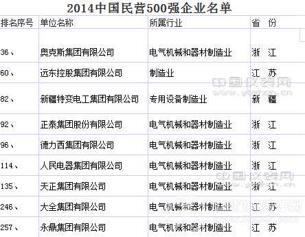 2014年10月27日,由中国民营企业联合会、中国统计协会、中国管理科学研究院企业研究中心联合组织的2014年中国民营500强企业调研排序榜单发布。据中国仪表网统计,此次入选的500强中,涉及到仪器仪表行业的约有9家,与仪器仪表相关的约有14家。