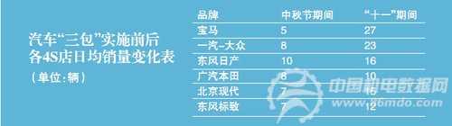 此外,颜景辉还强调,汽车“三包”的正式实施一定程度上刺激了“十一”期间的汽车销售,但销售旺季只是阶段性的,政策出台后汽车厂商和经销商应该将更多的注意力转到售后服务上,“这才是消费者关注的重点,也是车商们未来工作的重点”。