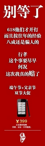 进入六月,进入到各大电商的促销季,以京东为首的“别X体”迅速占领微博等平台。一波涉及了京东、国美、苏宁易购、易迅、亚马逊、一号店、当当等的电商大战一触即发。