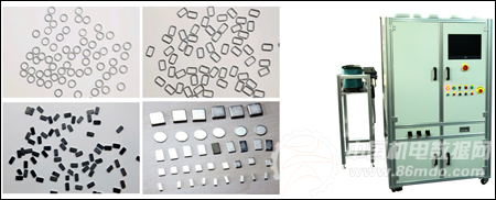 “钕铁硼工件尺寸外观检测设备”——领邦公司最新研发的自动全检设备,能快速检测多种规格产品的多项尺寸数据及上下两面的外观缺陷,并进行自动分选。该设备检测效率达200~400片/分钟(视工件尺寸形状而定),产品尺寸检测范围为2~20mm。
