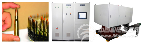 “枪弹快速检测设备”——由领邦公司研发的军用检测设备,采用激光测试技术和机器视觉技术,测量多种枪弹钢壳的几何尺寸和外观缺陷,配备世界领先的配件与图形化的操作软件,可对钢壳产品的16个项目进行全检,包括底缘厚度、底缘直径、全长和体高、全形、色差等等,检测效率高达65个/分钟,并可对合格品和不合格品进行分选。