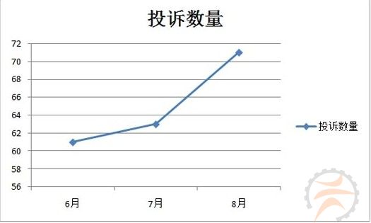 三个月内,涉及通用投诉案例显著增长,其中6月份61例、7月份63例、8月份71例。