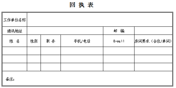 注:为便于安排酒店房间,请参会代表提前10天将此表传回。