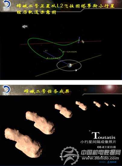 2012年6月1日,嫦娥二号脱离L2点轨道,经过195天飞行,实现与图塔蒂斯小行星交会。