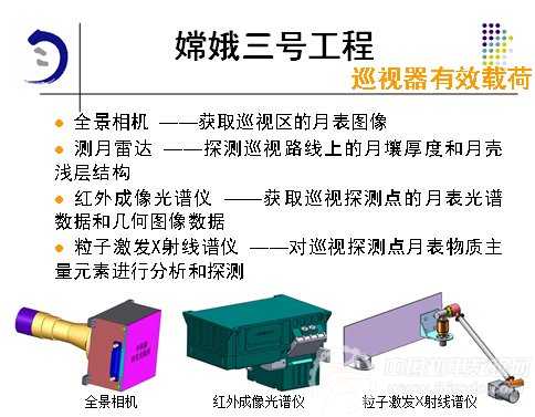 科学探测:1.月表形貌与地质构造调查。2.月表物质成分和可利用资源调查。3.月球内部结构研究。4.日-地-月空间环境探测和月基光学天文观测。
