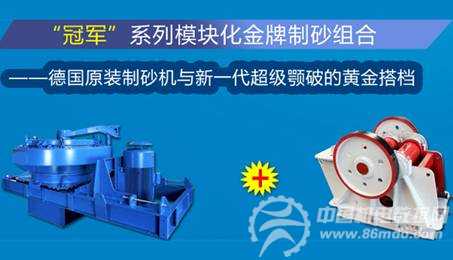 为加快实现十二五提出的建设新型工业化的目标,提高国内砂石生产技术水平,让国内砂石业主用上先进的砂石生产装备,提高生产效益,郑州鼎盛工程技术有限公司与德国领先制砂机制造商达成战略合作协议,为中国市场优惠提供R系列德国原装制砂机。 该R系列德国原装转子离心式制砂机与鼎盛专利产品单段颚式破碎机联合,被称为“冠军”系列模块化金牌制砂组合,是郑州鼎盛“四大金刚”之首,是制砂行业技术最为领先的高效节能设备,同时也让制沙生产线实现简洁、高效、节能的现代化生产。