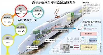 “原来一列8节车厢的列车,需要6节车厢装备动力;采用永磁同步牵引系统后,则只需要4节车厢装备动力即可,从而节省2节车厢的牵引系统成本”,负责高铁永磁牵引系统研究的中国南车基础与平台研发中心副主任许峻峰介绍说,利用永磁电机高效率特点,可以提高列车牵引效率,节省大量电能,同时提高我国高铁在节能、减排、安全、舒适等方面的综合竞争优势。