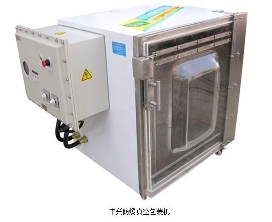 丰兴包装机械厂的防爆真空包装设备,从一面世就赢得了广泛关注。丰兴品牌外抽式真空包装机,不采用腔式工作室,而是使包装体本身起腔式作用:把包装物装进复合塑料真空袋内,将真空包装袋的袋口套上本机的抽气嘴上,然后启动机器,由上压块下压,压着袋口封闭后,真空泵自动启动抽气,抽至预制的真空度,加压、加热使包装袋口封合。通过抽气包装后,能保持物品的外观及内在质量,并能长期保存,适合包装容易受潮、受腐蚀气体及盐雾侵蚀的金属化学装置。在防爆技术方面,丰兴防爆真空包装机通过对控制部分严格采用防爆达标元件,电器箱达到防爆标准,加密封(防爆),真空泵外置,热封条加密封等方式对电机,发热装备,电器控制等整机进行了防爆处理,达到整机防爆。在应用方面,尤其是粉末包装领域,使其安全性提高了好几个层次,设备的稳定性、可靠性等多方面都有所提高。