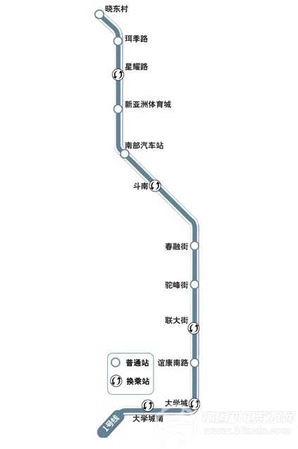 南段全程共设12个站点,包括晓东村站珥季路站星耀路站新亚洲体育城站南部汽车站斗南站春融街站驼峰街站联大街站谊康南路站大学城站大学城南站。