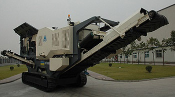 该机采用自行驱动方式,技术先进,功能齐全。在任何地形条件下,此设备均可达到工作场地的任意位置。这样可以减少对物料的处理操作,并且方便全部辅助机械设备的协调。通过无线遥控操纵,可以非常容易地把破碎机开到拖车上,并将其运送至作业地点。因为无须装配时间,所以设备一到作业场地即可立即投入工作。履带移动破碎站破碎比大,其优化设计可满足破碎机最需要的技术特点,生产率高,成品料粒度均匀一致。