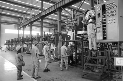 图为金秋十月,该公司又一台GK400变频式密炼机正在加紧试车。
