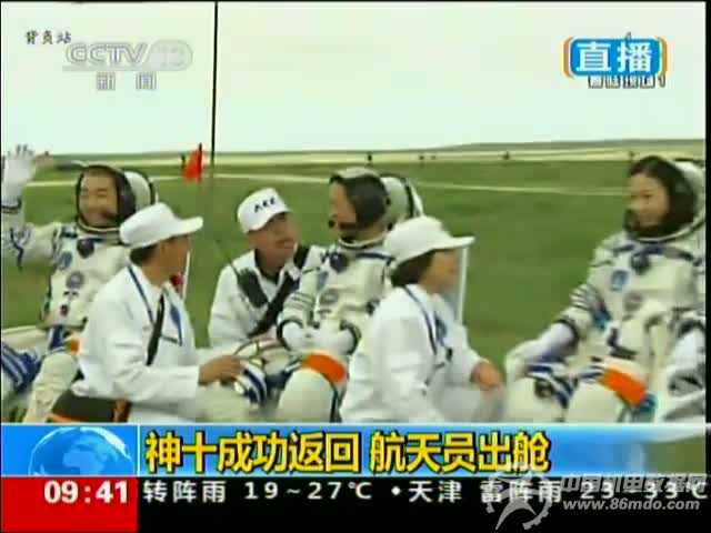 “神十”3名航天员此次飞天征程中,成功实施进驻天宫一号、飞船与天宫一号自动和手控交会对接、中国首次太空授课、中国首次航天器绕飞交会试验以及航天医学实验、技术试验等一系列太空活动,圆满完成了中国载人航天工程天地往返运输系统首次应用性飞行任务。