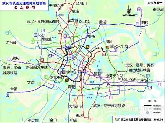 到2049年建国100周年时,武汉地铁线路将达22至23条,共10条地铁隧道穿越长江,主城区市民平均步行800米即可见到一座地铁站。27日上午,《武汉市轨道交通线网规划修编(2013—2049年)》初步方案在武汉市民之家公开展示。初步方案共有两个,描绘了武汉地铁发展蓝图,并征求市民意见。
