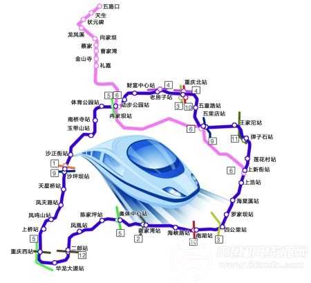 据了解,环线工程线路全长约50.93公里,其中地下线路长43.622公里,高架线路长6.66公里(设置高家花园轨道交通专用桥跨越嘉陵江,鹅公岩轨道交通专用桥跨越长江,利用朝天门公轨合用桥跨越长江),地面线长0.643公里,全线起点为奥体中心站,共设33座车站(见制图),其中地下站28座、高架站3座、半地面站2座;设涂山车辆段、四公里停车场、马家岩停车场。