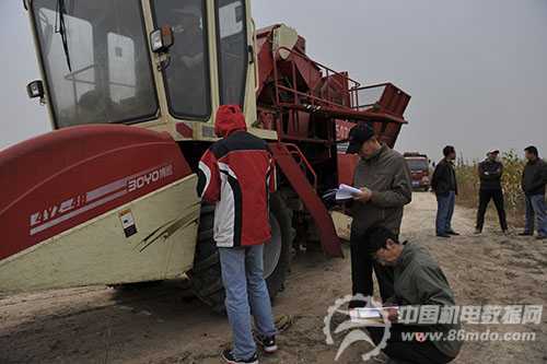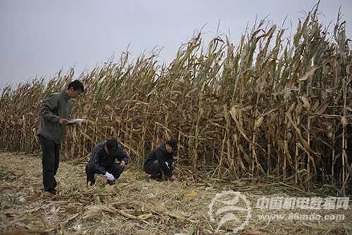试验组以国家玉米收获机鉴定大纲为标准,对参加鉴定试验机具进行了5个方面的检测和试验:1、机具安全性(安全防护罩、标识等)及说明书、配套动力、割幅等相关技术参数的核查;2、机具发生首次故障时间;3、机具发生故障的部位和部件的内容;4、田间性能测试;5、用户调查;