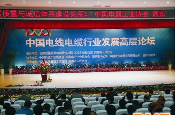 这次论坛由国家质检总局、工业和信息化部、安徽省政府主办,中国机械工业联合会、中国电力企业联合会、国家电网公司、中国南方电网有限责任公司、经济日报社协办,安徽省质量技术监督局、芜湖市人民政府承办。参加本次论坛的有各省市自治区质监局领导,全国双A百强线缆企业负责人,安徽省线缆生产和配套企业的负责人共700多人。