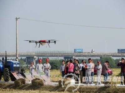 10月23日,海宁市在海昌街道双喜村召开全市秋收冬种现场会,期间展示农用无人植保机。据悉,在现场会上展示的这款四旋翼无人植保机又称“谷上飞”,适合中小型农田作业,单机每小时作业效率在30―40亩,农田植保中能替代人工,能大大节省劳动时间和劳动成本。(海宁市)