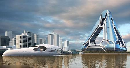 比利时著名建筑设计师VincentCallebaut设计了一个“水上城市Lilypad”(译名“百合花瓣”)的水上移动城市模型。它是一个漂浮的两栖城市,可根据不同风向和气候在地球上到处漂流。