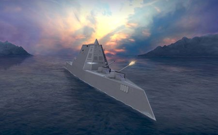 DDG-1000型朱姆沃尔特级驱逐舰是美国海军正在研制的最新大型驱逐舰,首舰于2007年7月开工建造,其设计理念可以称得上是颠覆了不少现代军舰的建造理念。比如其舰体设计就采用了穿浪单体内倾船型,斜角式船舷设计,这样做的主要目的是最大可能地增强其对雷达的隐身性能。这也使得该舰在外型上就十分科幻,如同科幻电影里的宇宙飞船一般,有网友甚至将其称为“星河战舰”。