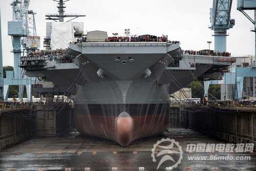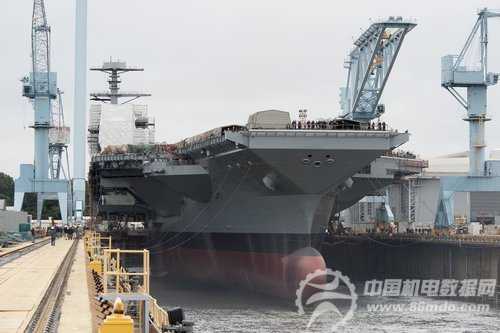美国海军下一代主力航母的首舰福特号所在船坞放水。点击查看高清组图