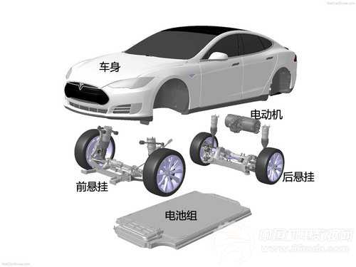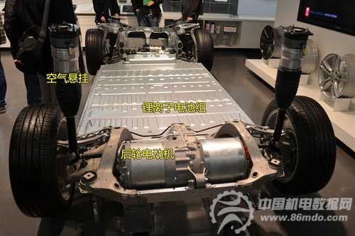 Model S另一大创新则是底盘与动力系统的改变。相比传统汽车,Model S的结构相当简单,主要部件包括电动机、变频器、车轮、减震与刹车系统,还有整个底板的电池组。没有了引擎、变速箱(没错特斯拉只有一个前进挡,车速全凭踩加速踏板的力度控制)、传动轴,特斯拉官方称Model S已经没有多少易损部件,真正的转动部分只有车轮和电机。保养也变得非常简单,不需要按公里数更换机油三滤,更不需要更换变速箱油、差速器油,只有常规的电路检查,以及给那个17寸“iPad”进行软件升级,带给Model S更多更稳定的性能。