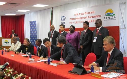 2010年一汽和中非发展基金合资合作建立了一汽非洲投资有限公司,主要在非洲地区从事汽车及零部件相关行业的投资和贸易,一汽位于南非东开普省(Eastern Cape)纳尔逊曼德拉市的Coega工业区工厂是双方合作投资的首个汽车项目,该厂今年2月奠基。
