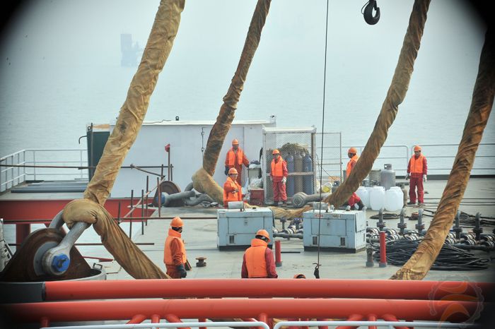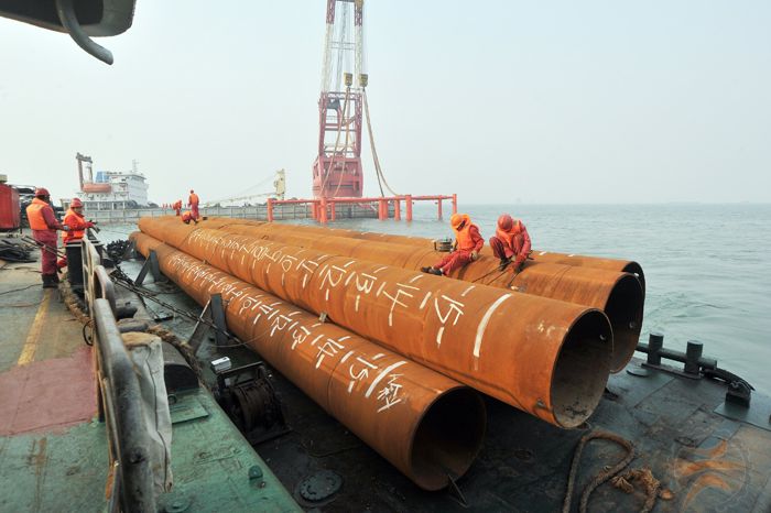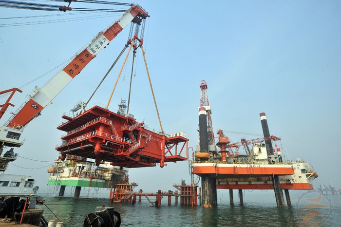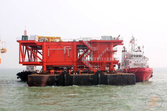 CB22F采修一体化平台,是胜利油田迄今最大、最重、最高的采修一体化平台,框架尺寸为24米*24米,总重超过1200吨,平台设计为40井式。施工中,胜利油建公司采用平台平移方法,对水流速度、就位角度进行不间断监测,最终在两台钻井平台中准确就位,圆满完成平台吊装加固任务。