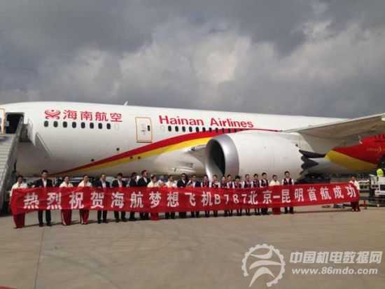 11月15日上午11点45分,海南航空股份有限公司(HAINAN AIRLINES CO.,LTD,以下简称“海航”)第4架波音787梦想飞机执飞的HU7165次航班平稳降落昆明长水国际机场,海航波音787成功首航北京-昆明航线。
