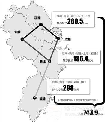 “华东联网”大体分成三个主要部分:安徽-浙江-上海;福建-浙江;安徽-江苏-上海。目前,前两个项目已经获得核准。