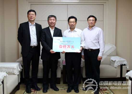 4月25日,受集团党组的委托,集团工会主席薛亚松一行来到四川省人民政府,代表中航集团7万干部职工向芦山地震灾区捐款1000万元人民币。四川省人民政府副秘书长蔡竞代表省政府接受了捐款,并对中航集团和国航表示感谢,承诺将把善款用到最需要的地方。集团党组办公室副主任匡洪杰和国航西南分公司总经理刘铁祥、四川省政府应急办副主任骆西宁参加了捐赠仪式。