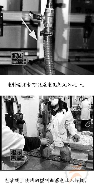 在调查过程中,记者采访的多位业内专家都一致认为,白酒企业在生产和储运过程中,所使用的塑料管道、塑胶容器、瓶盖或其他塑料包装材料中可能含有塑化剂,白酒产品在这个过程中被塑化剂污染的可能性比较大。实验证明,塑化剂在乙醇也就是酒精中,确实更易溶解。